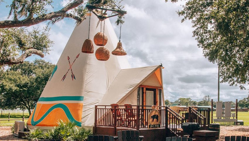 일년 내내 운영되는 플로리다주 폴크 카운티의 1,700에이커 규모의 Westgate River Ranch는 글램퍼들에게 서부 테마의 경험을 제공합니다. 경치 좋은 키시미 강을 내려다보는 이 글램핑장은 정통적인 농장으로, 매주 황소 타기와 배럴 경주를 특징으로 하는 로데오를 개최합니다. 부지의 완비된 텐트에서 글램핑을 즐기거나 도자기, 주철 발톱 욕조와 같은 다양한 고급 편의 시설을 갖춘 650제곱피트 규모의 아메리카 원주민 테마 Luxe Teepee를 선택하세요. 인근 키시미 강을 따라 가이드 에어보트를 타고 야생 동물을 관찰하거나, 어린 자녀가 있다면 라마와 공작이 있는 현장 애완동물 동물원에서 오후를 보내세요. https://www.westgateresorts.com/